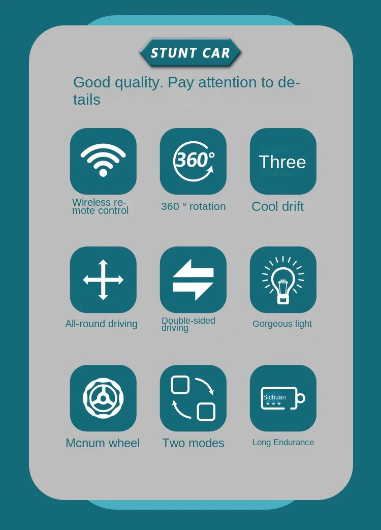 O controle remoto usa banda de frequência de 2,4g e pode ser controlado de forma independente, o que é muito adequado para pais e filhos aproveitarem o momento pai-filho junto com vários carros de controle remoto