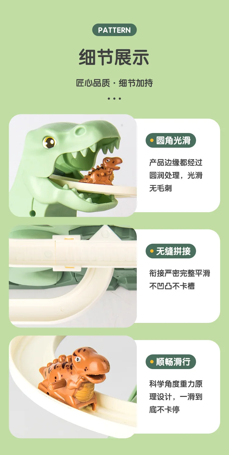 1. Atenda a diferentes necessidades: traga alegria à brincadeira do seu filho com nosso criativo e fofo brinquedo de montanha-russa.Cada conjunto vem com 1 papelão de desenho animado, 3 faixas, 1 escada musical e 3 tirannosaurus rex.