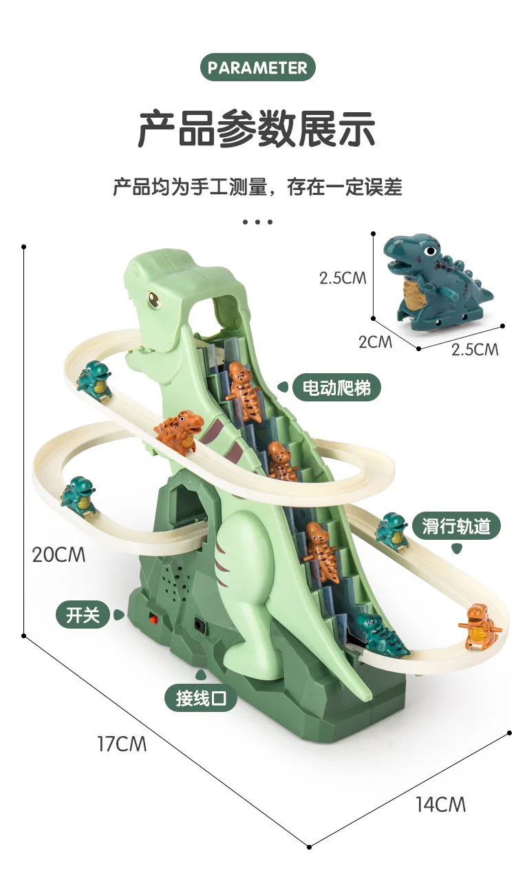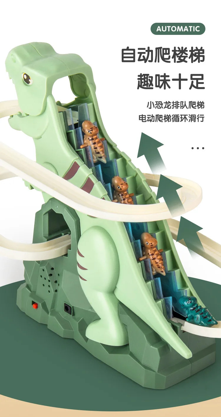4. conveniente para operar: aproveite mais diversão com nosso brinquedo de montanha-russa que oferece opções de bateria e carregamento usb.Ligue o botão e observe o dinossauro subir escadas sem esforço e deslizar ao longo da pista.Fácil de usar e adequado para todas as crianças que desejam uma aventura emocionante.